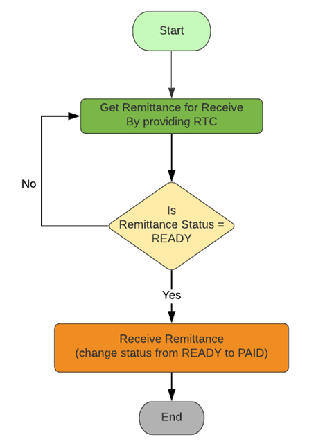 The diagram below illustrates the flow for receiving a Cash Pick-up remittance.