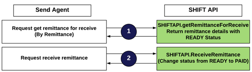 The diagram below illustrates the sequence of steps for receiving a Cash Pick-up remittance.